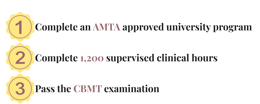 The profession of music therapy requires all music therapist to acquire and maintain the Music Therapist-Board Certified credential through the Certification Board for Music Therapists (CBMT). In order to receive that certification, there are three steps that must be completed: