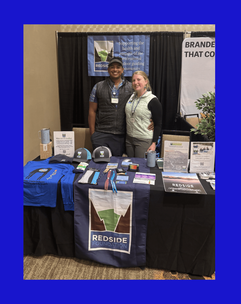 At the same time she was collaborating with the Responder Alliance, Pamela formed a relationship with the Redside Foundation. She fell in love with their mission of “supporting the health and strength of the outdoor guiding community.” This lead Pamela to volunteer her time advocating for the Redside foundation at the 2025 FIBARK festival, speaking with her fellow river guides about the services they received, and speaking with outfitters about the importance of supporting Redside. Later that fall, Pamela and her husband, Alfredo (river guide of 15 years at the time) attended the Colorado River Outfitters Association (CROA) convention as representatives of Redside to speak with leaders in the Colorado river tourism industry about Redside.