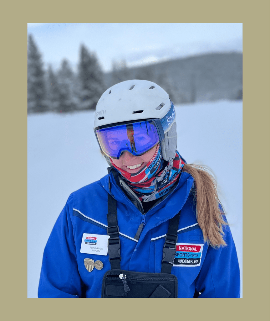 Pamela’s interest in adaptive outdoor recreation lead her to accept a position as an adaptive ski instructor and program coordinator with the National Sports Center for the Disabled (NSCD) in Winter Park, CO starting in 2021. She had the opportunity to serve as the program supervisor and trainer in the 2023-2024 season where she designed a revised training program that was utilized in the reconstruction of the adaptive ski training at the NSCD.