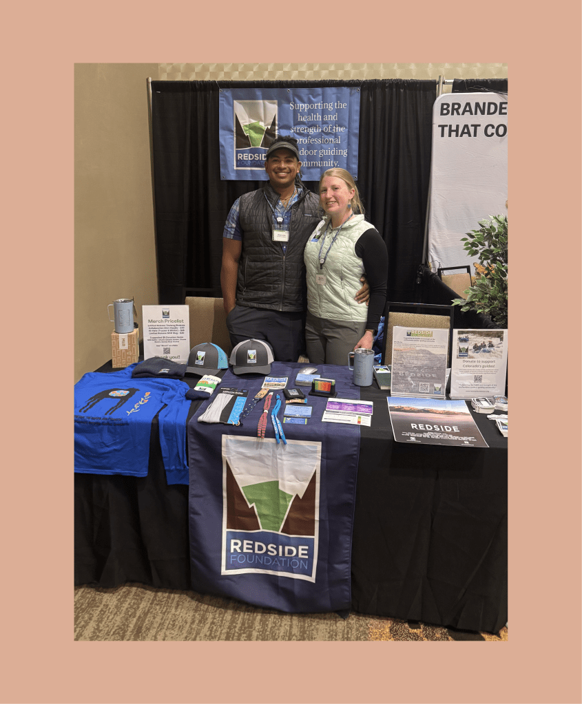 At the same time she was collaborating with the Responder Alliance, Pamela formed a relationship with the Redside Foundation. She fell in love with their mission of “supporting the health and strength of the outdoor guiding community.” This lead Pamela to volunteer her time advocating for the Redside foundation at the 2025 FIBARK festival, speaking with her fellow river guides about the services they received, and speaking with outfitters about the importance of supporting Redside. Later that fall, Pamela and her husband, Alfredo (river guide of 15 years at the time) attended the Colorado River Outfitters Association (CROA) convention as representatives of Redside to speak with leaders in the Colorado river tourism industry about Redside. She has now contracted with Redside to serve as the Colorado Community Coordinator.